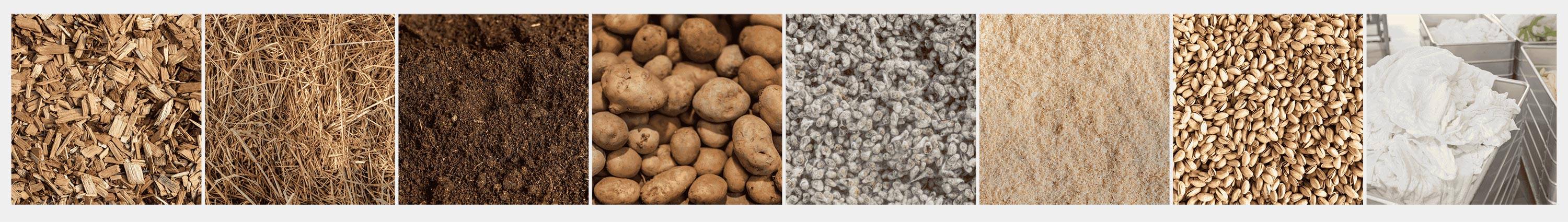 Woodchips, hay, compost, potatoes, cotton seeds, peat & sawdust, pistachios — even laundry.